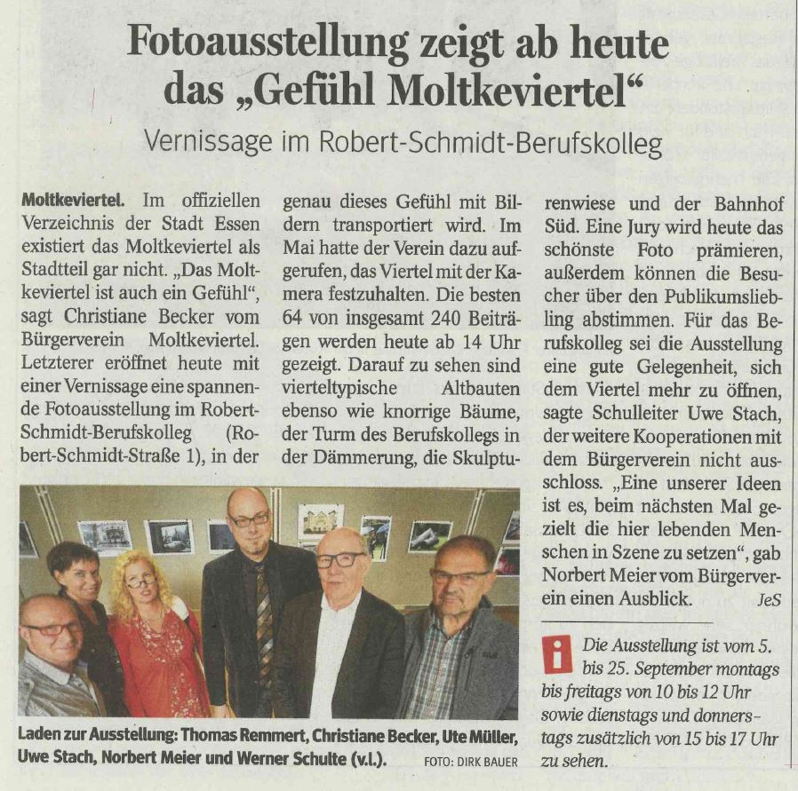 Ansichten aus dem Moltkeviertel: AusstellungsankündigungWAZ und NRZ vom 21. August 2015Dateigröße: 1 MB