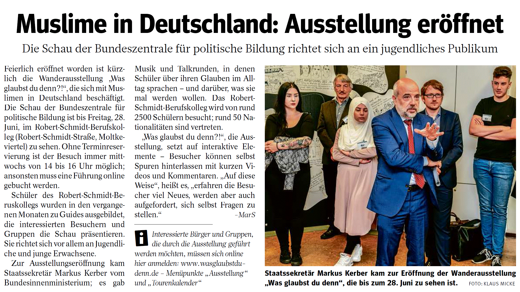 Feierliche Eröffnung der Ausstellung über Musilme in Deutschlandvlw Artikel vom 01. Juli 2019Dateigröße: 738 KB