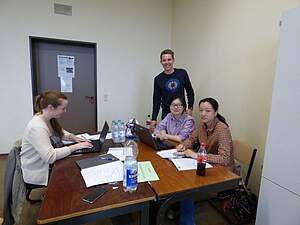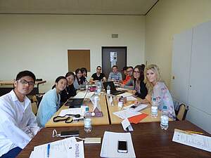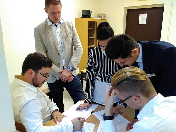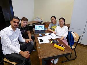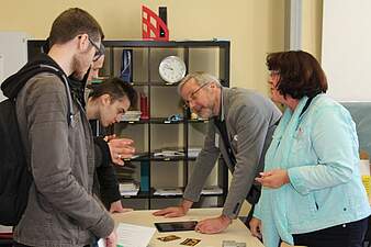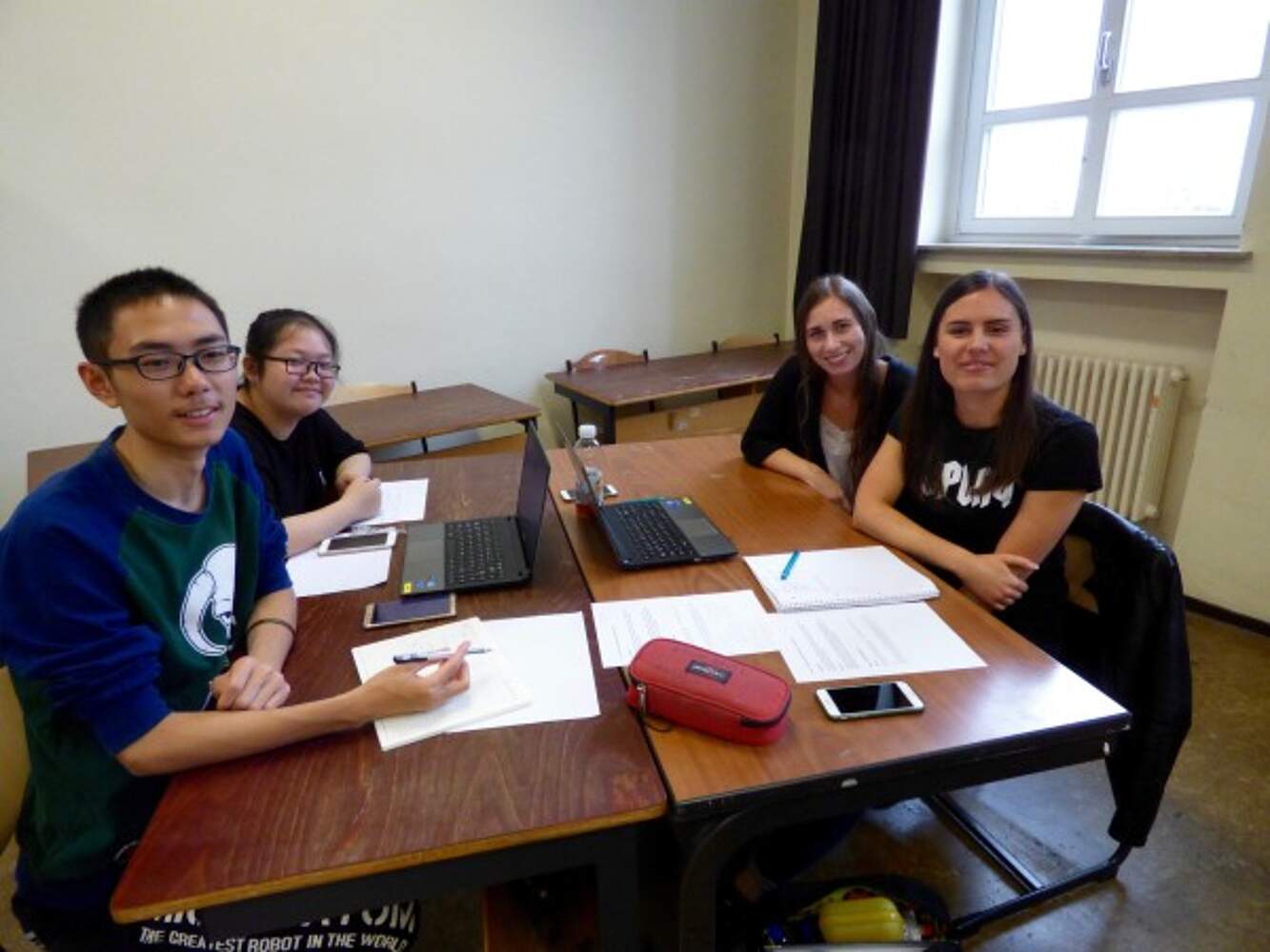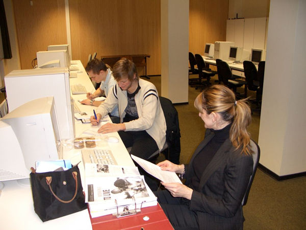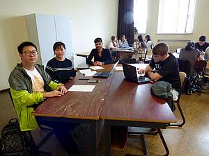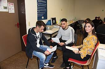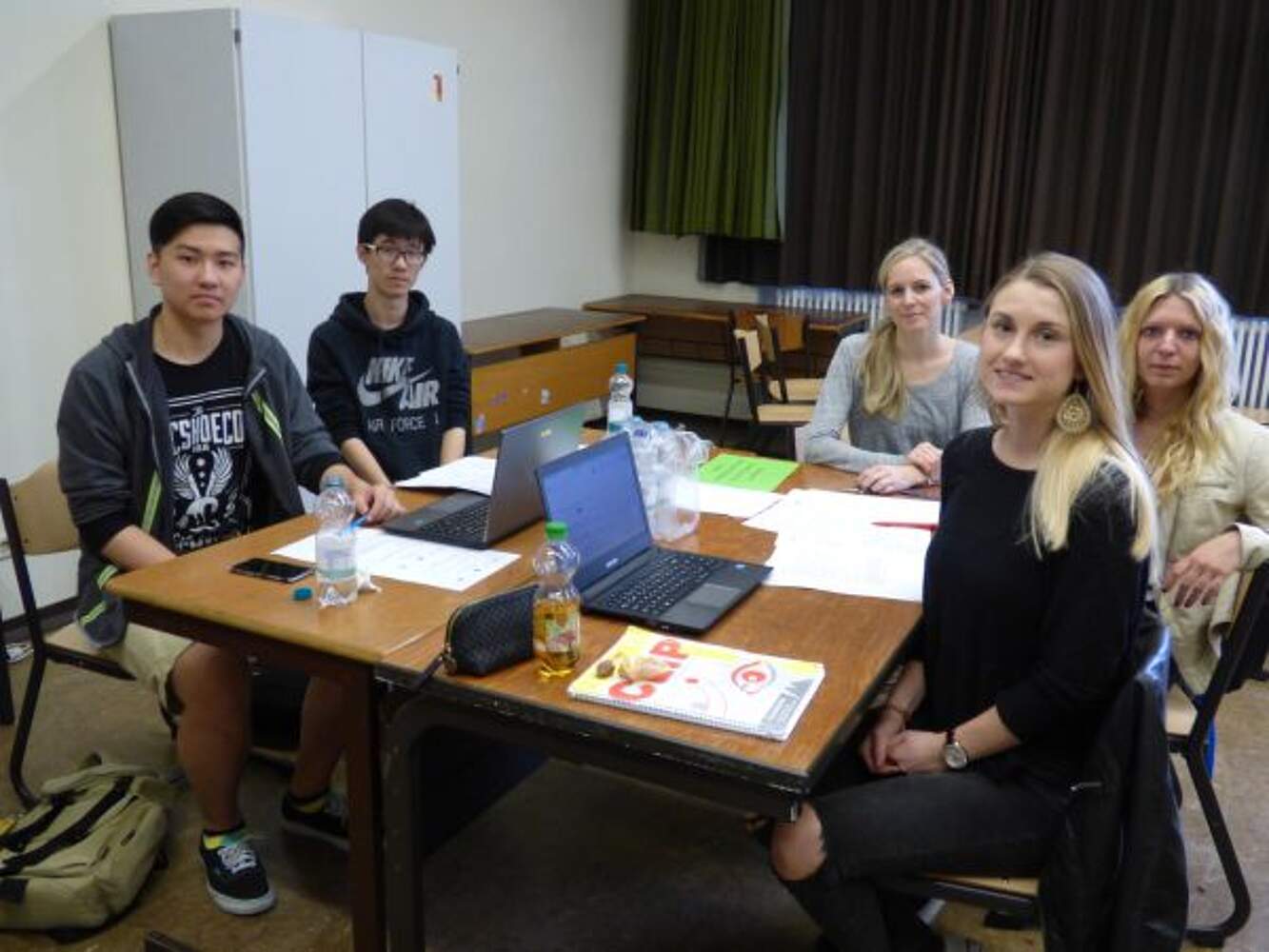 Das Foto zeigt die letzte Vorbereitungssitzung in unserer Schule kurz vor der Abreise. Von links nach rechts erkennt man Tobias Lischka (Praktikum in Island), Martin Fix (Praktikum in Nordschweden) und die Ausbildungsleiterin der Firma Delker Frau Lovric.