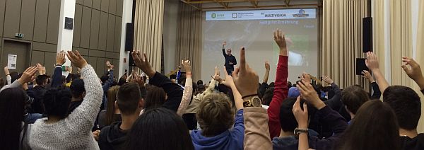 Wir entscheiden heute über die Welt unserer Kinder. Die Multivisionsshow mit Vortrag von Oxfam Deutschland und dem Wuppertaler Institut für Klima Umwelt und Energie sahen und hörten alle Klassen der Höheren Handelsschule am 05.09.2015.