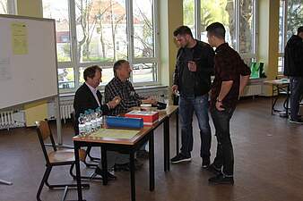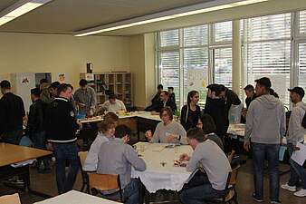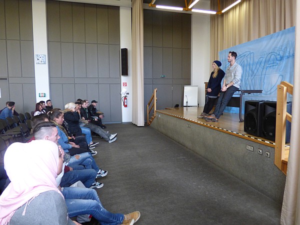 Die Berufsschüler der Unterstufen nutzten die Gelegenheit, um Fragen zur praktischen Durchführung an die ehemaligen Auslandpraktikanten zu stellen.