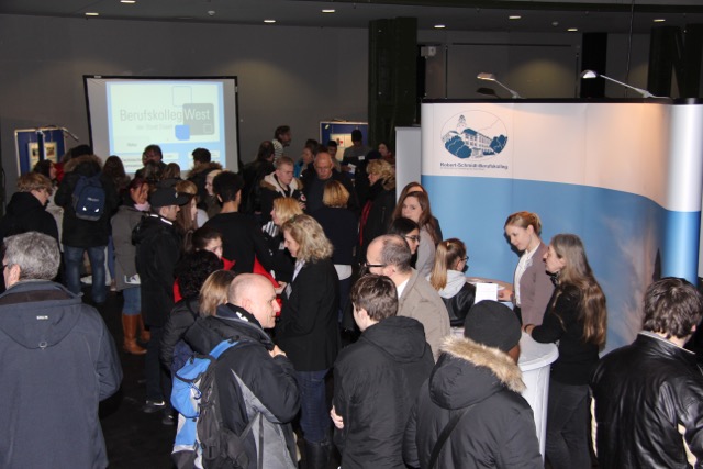 Am 20. Januar 2019 fand in der Weststadthalle das dritte Speed-Dating der 12 Essener Berufskollegs statt. Auch Schulleitung und Lehrer des Robert-Schmidt-Berufskollegs nahmen erfolgreich teil. In der Zeit von 11 bis 14 Uhr konnten sich Schüler und Eltern in persönlichen Gesprächen ein Bild von unserem kaufmännischen Berufskolleg im Moltkeviertel machen.