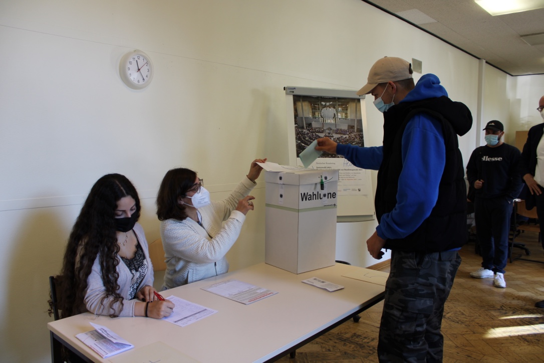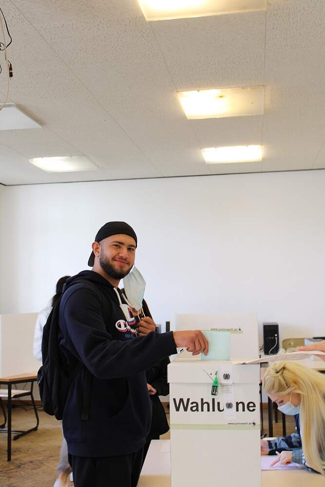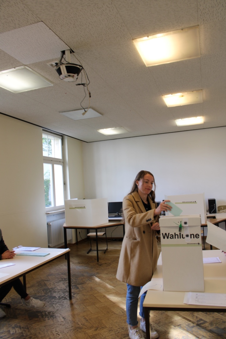 Bei der Juniorwahl dürfen alle Schülerinnen und Schüler ihre Stimmen abgeben, egal, ob sie schon 18 Jahre alt sind oder nicht. So nahmen dieses Jahr vier Berufsschulklassen und fünf Vollzeitklassen mit 183 wahlberechtigten Schülerinnen und Schülern teil und gaben 146 Stimmen ab.