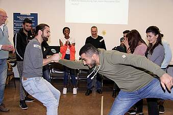 An dem Programm nehmen acht Klassen der Handelsschule und der Höheren Handelsschule teil. An jeweils vier Tagen werden die o. g. Ziele mit jeder Klasse und ihrem Klassenlehrer umgesetzt. Vom Jugendmigrationsdienst Essen arbeiten Charlotte Heyng und Bilge Colak mit den Schülern, unterstützt von Sönke Willms-Heyng und Oskar Schwarzin vom Verein für interkulturelle soziale Arbeit e.V. (VisA).