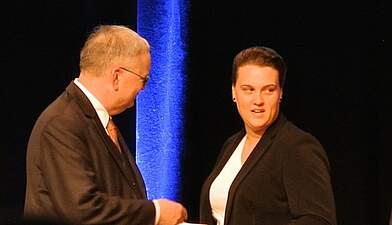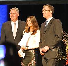 Die beiden landesbesten Auszubildenden eines jeden Ausbildungsberufsberufes wurden dann am 22. November 2019 von der Südwestfälischen Industrie- und Handelskammer zu Hagen (SIHK) als Top-Azubis in NRW ausgezeichnet. Nach einer beeindruckenden Lasershow zu Beginn und einer „zauberhaften“ Laudatio durch den „Deutschen Meister der Zauberkunst“, Matthias Rauch, ging es mit der Ehrung der „Super-Azubis“ zurück in die Realität. Die Moderatoren der Matinée, Tom Schachtsiek und Timo Hiepler, begrüßten über 800 Gäste in der Stadthalle Hagen. Neben den Landesbesten waren auch Angehörige und Freunde, Unternehmensvertreter und Vertreter der Berufskollegs sowie die Bildungsgeschäftsführer aller 16 Industrie- und Handelskammern in Nordrhein-Westfalen in Hagen zu Gast.