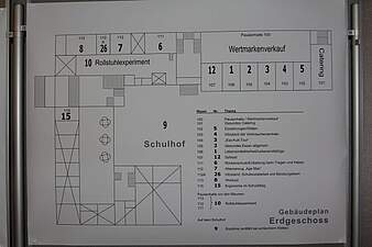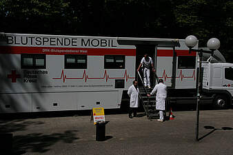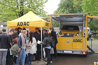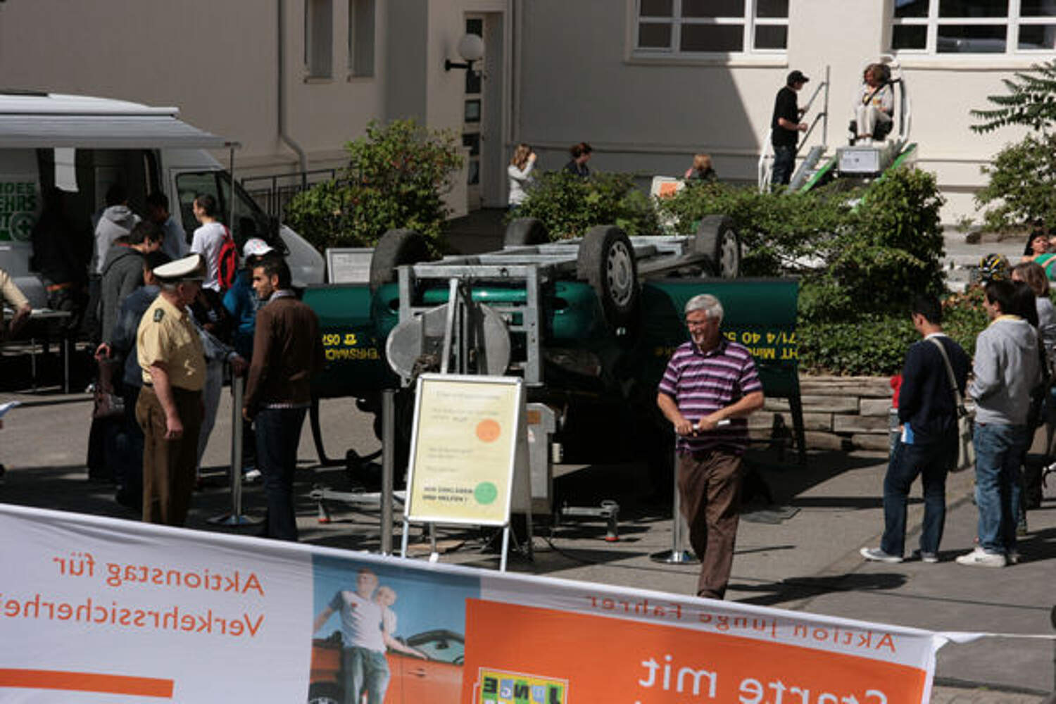 Während vor dem Gebäude zwei Blutspendemobile im Laufe des Tages 107 Spender, davon 43 Erstspender verzeichnen werden, bieten auf dem Schulhof und in der Pausenhalle zehn Stationen und drei Informationsstellen der Polizei, der DEKRA, des Roten Kreuzes, der Verkehrswacht und einer Klasse der Medizinischen Fachangestellten des Robert-Schmidt-Berufskollegs Anlaufstellen zum Erleben von problematischen Situationen und zur Information über Risiken und Folgen unangemessener Verhaltensweisen im Straßenverkehr.