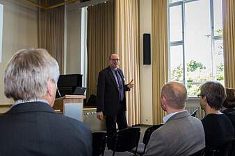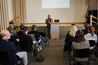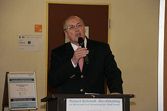 Der Schulleiter Uwe Stach eröffnete die Veranstaltung. Er nutzte die Gelegenheit, die Schüler zur Teilnahme aufzurufen und machte deutlich, wie sehr ein EU-Auslandspraktikum die duale Ausbildung aufwertet.