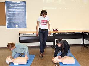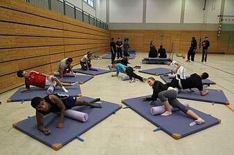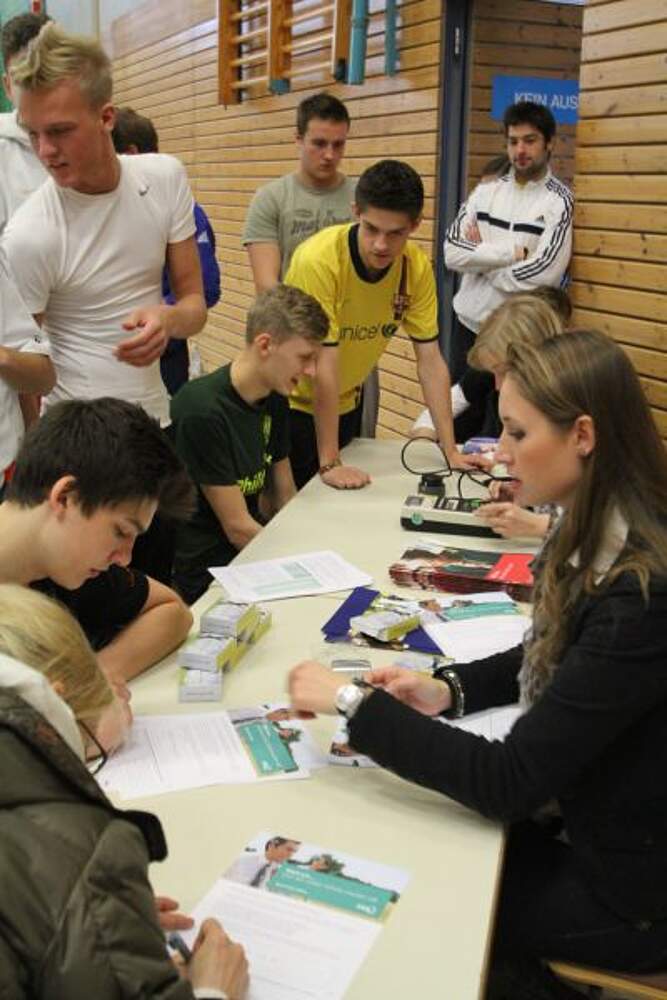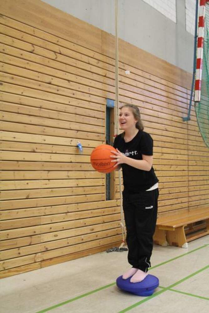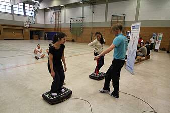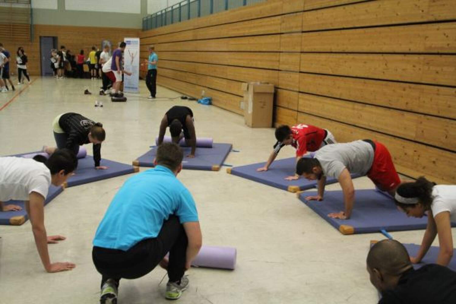 Die Aktion" 1000 Schritte am Tag" beeindruckte die Teilnehmer sehr, und jeder Schüler erhielt im Anschluss einen Schrittzähler als Geschenk. Zudem wurde auch eine Fettanalyse angeboten. Ebenso bedanken wir uns bei Sven Kampmann, der mit seiner Physiotherapie „Handarbeit“ das Projekt tatkräftig unterstützte. Die Schüler durchliefen einen Sensomotorik-Parkour, welcher dazu dient, Verletzungsrisiken im Sport zu minimieren. Des Weiteren lernten die Schüler Togu-Rollen als Reaktion auf muskuläre Störungen einzusetzen und andere prophylaktische Übungen auf Gymnastik-Matten. Auch hier waren die jungen Leute mit Begeisterung dabei.