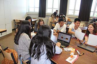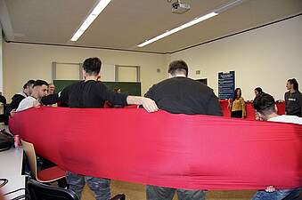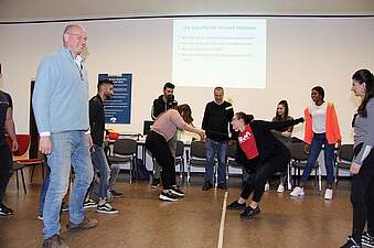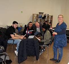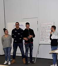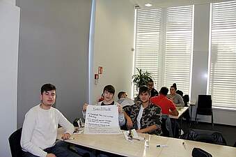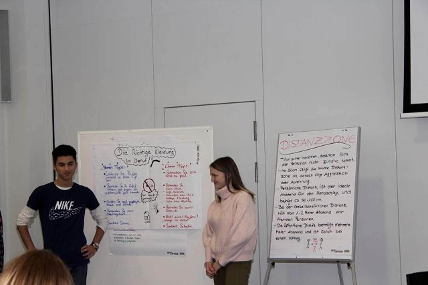 Unterstützt wurde das Erasmus+-Team dabei durch Teilnehmer/-innen vom Herbst 2019, die den Unterstufen der dualen Bildungsgänge von ihren Erfahrungen berichteten, Fragen der Auszubildenden beantworteten und praktische Tipps gaben.