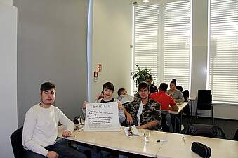 Das erste Modul findet in der Schule statt, das zweite ist ein erlebnispädagogischer Tag mit Klettern in Mühlheim oder näherer Umgebung. Am dritten und vierten Tag erhalten die Schüler außerschulischen Unterricht in den Seminarräumen im Haus am Turm.