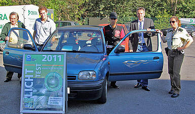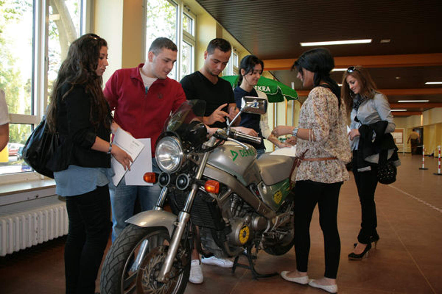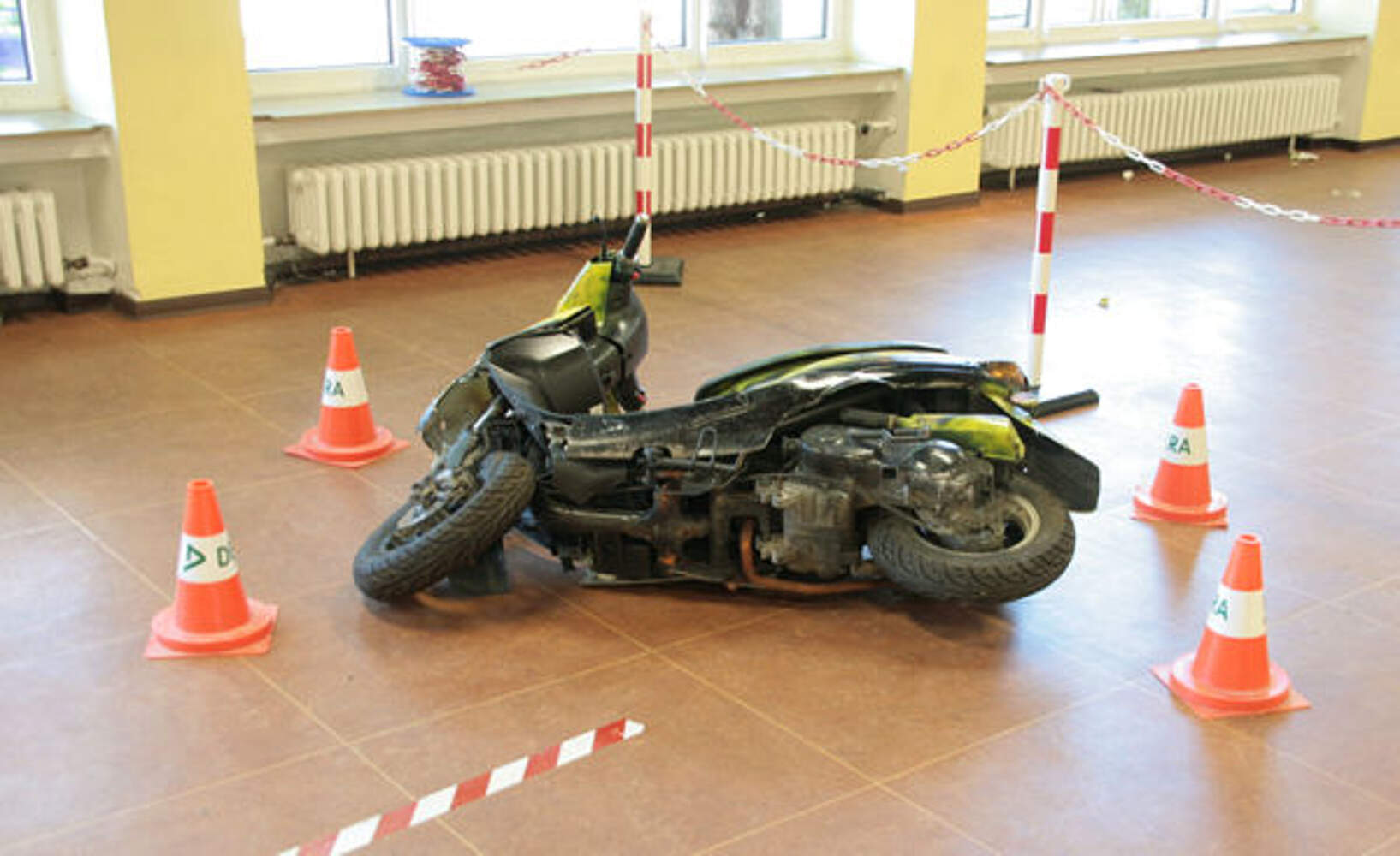 An einem „Mängelmotorrad“ Fehler zu finden, ist nicht ganz einfach. Der verunglückte Motorroller gibt vielen Besuchern ebenso zu denken wie der Ausgang des einen oder anderen Seh- und Reaktionstests.