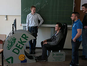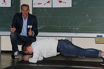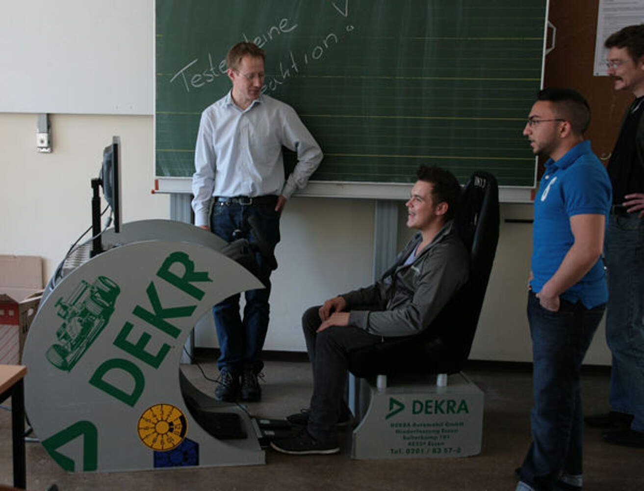 Die Polizei Essen demonstriert eindrucksvoll anhand einer Lernsoftware, dass sich die physischen Gesetze durch noch so „gutes“ Fahrvermögen nicht außer Kraft setzen lassen. Polizeihauptkommissar Michael Seth kommt mit vielen Schülerinnen und Schülern ins Gespräch über die emotionalen und psychischen Konsequenzen von Unfällen. Persönliche Erfahrungen können von beiden Seiten beigesteuert werden.