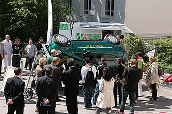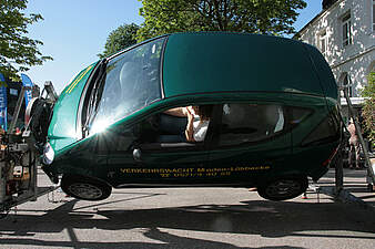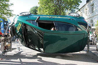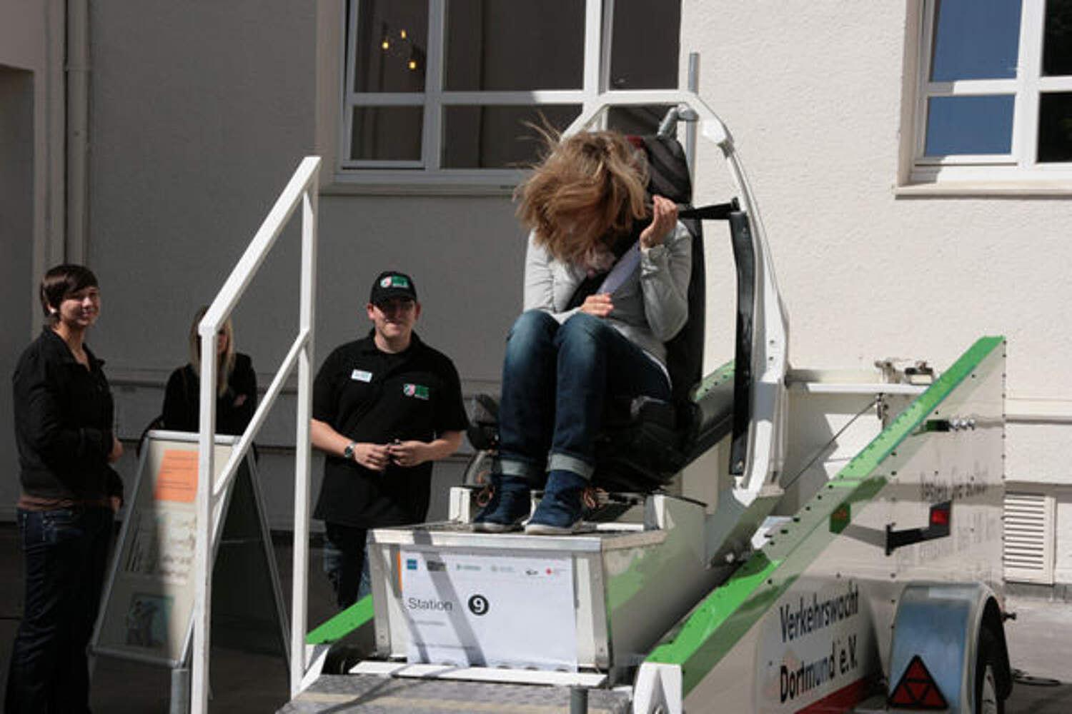 Die „Hauptattraktionen“ sind sicherlich der Gurtschlitten und der Überschlagssimulator. Dafür, dass auch der Bewegungsdrang nicht zu kurz kam, sorgen die beiden „Rausch¬brillen“-Parcours der Polizei, auf denen die (simulierte!) Wahrnehmungsbeschränkung durch Alkohol oder Drogen erfahren werden können, ohne Umstehende zu gefährden.