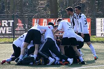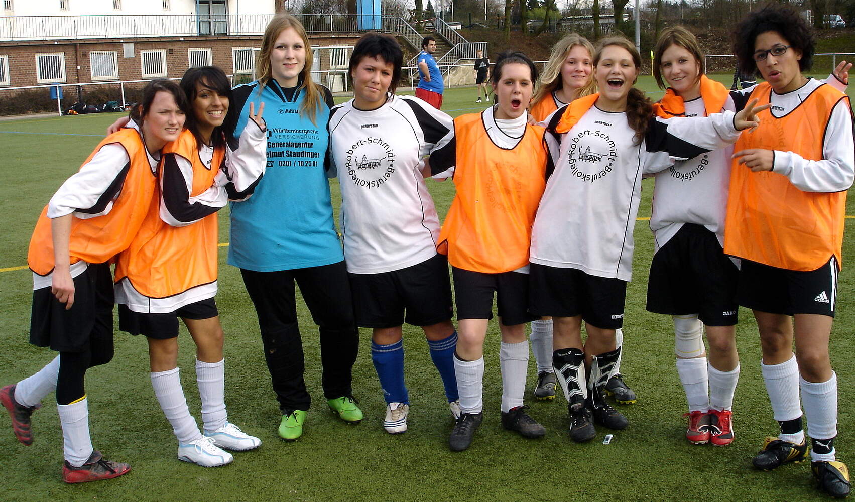 Im diesjährigen Endspiel um die A-Jugend-Fußballstadtmeisterschaften der Schulen traf unsere Mannschaft auf das Maria-Wächtler-Gymnasium, das genau wie unser Team bislang alle Turnierspiele siegreich gestalten konnte. Von Spielbeginn an präsentierte sich die Maria-Wächtler-Elf sehr defensiv und versuchte nur gelegentlich mit Kontern zum Erfolg zu kommen. Trotz drückender Überlegenheit und hoher Einsatzbereitschaft gelang es unserer Mannschaft zunächst nicht, die kompakte Abwehr der Gymnasiasten zu durchbrechen. Erst zwanzig Minuten vor Spielende konnte das Maria-Wächtler-Defensivbollwerk überwunden werden. Atakan Karazor erzielte das erlösende und viel umjubelte 1:0. Wenige Minuten später brachte Aslan Nadojan mit seinem Treffer zum 2:0 die hochverdiente Entscheidung. Ein toller Erfolg, der neben der hohen technischen Qualität im Kader insbesondere auf den enormen Teamgeist und Einsatzwillen zurückzuführen ist.