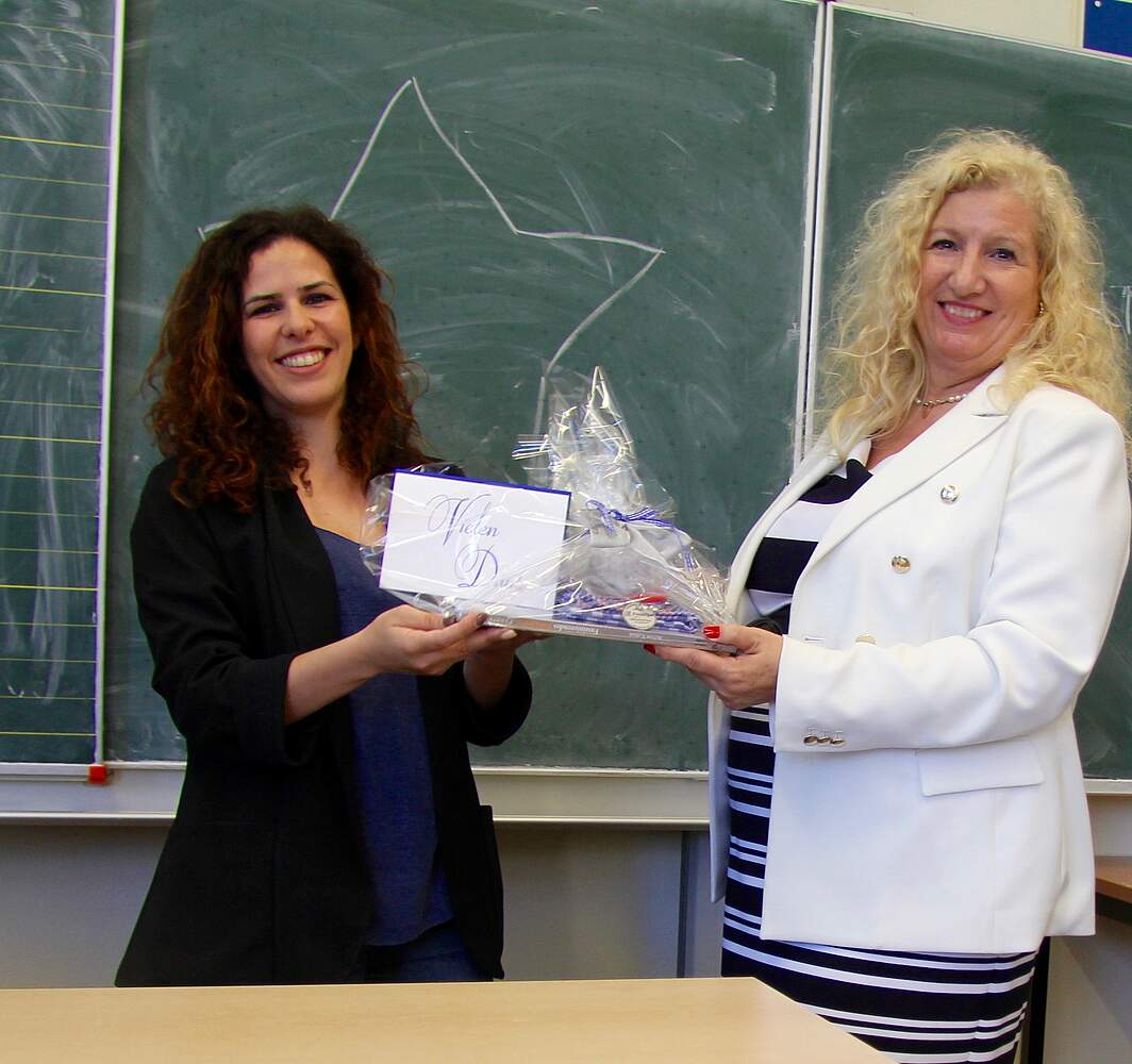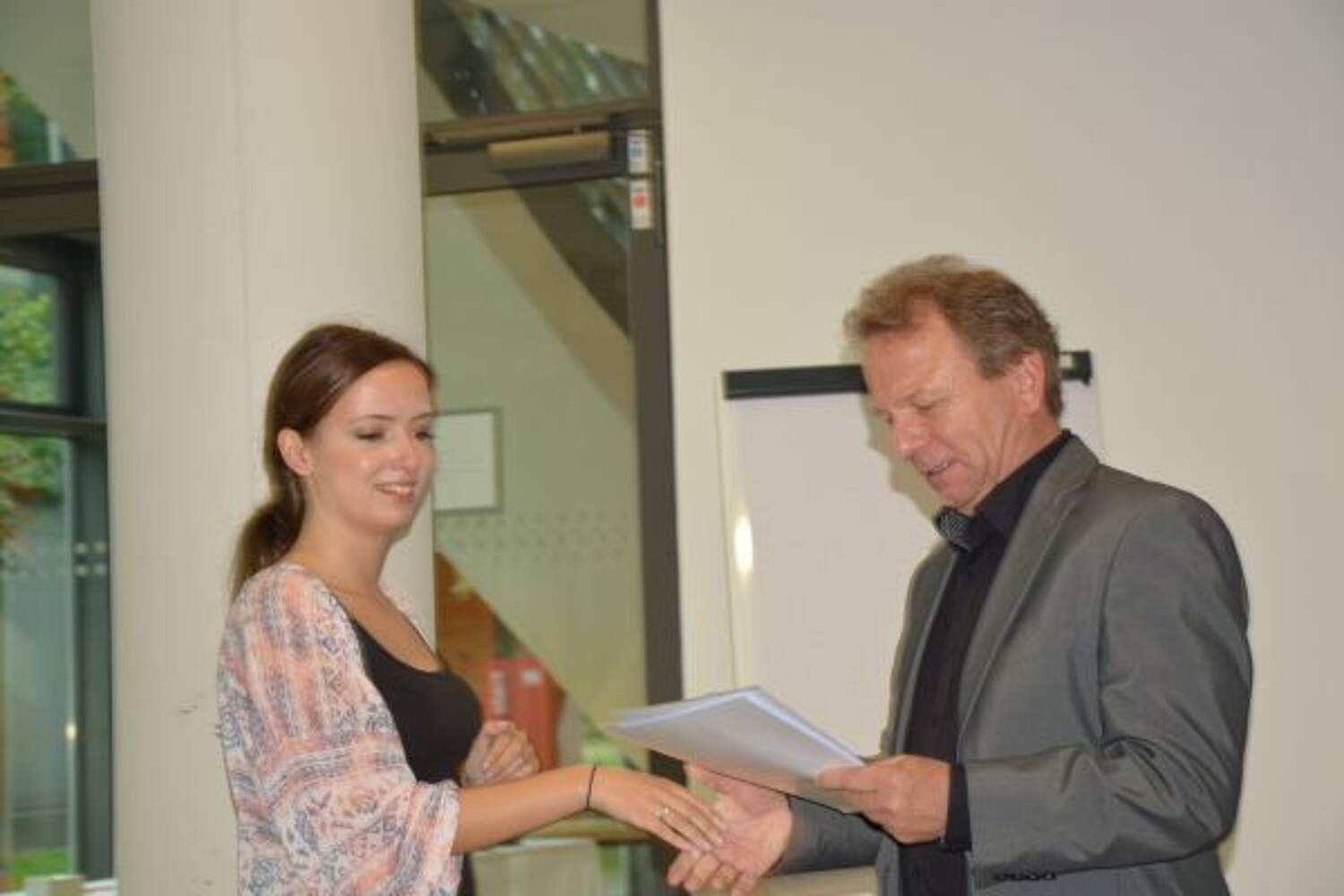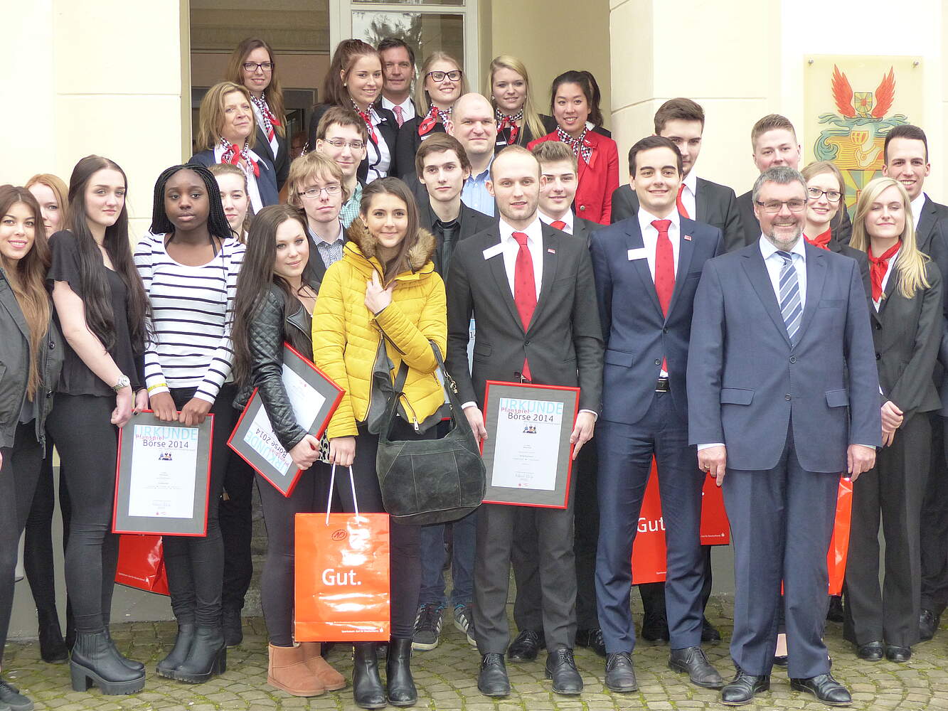 Dabei sind wir besonders stolz darauf, dass hier zum zweiten Mal in Folge mit Frau Inga Langemeyer und Frau Dana Sturm die besten Auszubildenden im Groß- und Außenhandel, Fachrichtung Außenhandel beide Preisträgerinnen unsere Schule besucht haben. Das hohe Niveau unserer Ausbildung in diesem Bereich wird zudem dadurch deutlich, dass von den sieben Absolventen in diesem Bereich, die in diesem Jahr in NRW die Note „sehr gut“ erreicht haben, fünf von unserem Berufskolleg stammen.