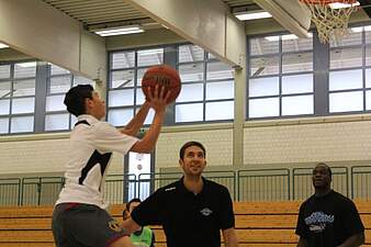 Ein besonderes Highlight für alle war das Turnierspiel mit den Basketballprofis zu Beginn und zum Abschluss des Projekttages, bei welchem sich die Profis der Wohnbau Baskets, wie z.B. Chris Alexander, den einen oder anderen Spass mit den Schülern erlaubte. Zum Abschluss des Tages gab es noch Freikarten für das nächste Bundesliga-Spiel der Wohnbau Baskets gegen die Giants aus Düsseldorf. Insgesamt war es ein erfolgreicher Tag für alle, da das Interesse der Schüler für dieses Thema gestärkt und gefestigt wurde. Wir hoffen, dass sich in Zukunft weitere Gelegenheiten ergeben werden, damit auch weitere Klassen von ähnlichen Veranstaltungen profitieren können.